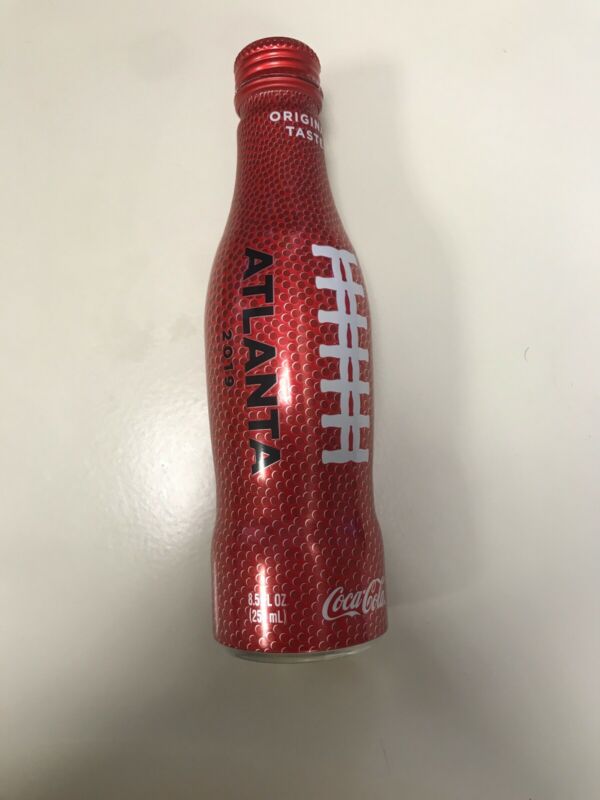 Title (ebay affiliate link): FULL UNOPENCoca-Cola 2019 Atlanta Super Bowl LIII football red aluminum bottle