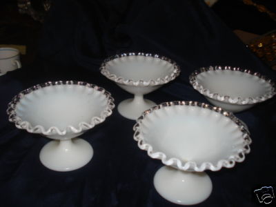 FENTON SILVERCREST SHERBET MILK GLASS SET 4