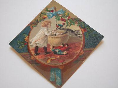 Victorian Lion Coffee Trade Card Merry Christmas Kitty