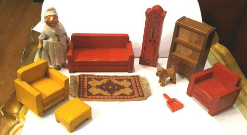 Title (ebay affiliate link): OLD PAINTED WOOD STROMBECKER LIVING ROOM DOLL HOUSE FURNITURE COMP DOLL LOT ++