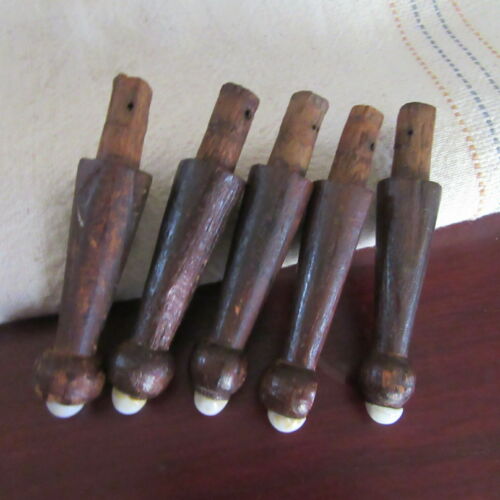Antique Hand Hewn Wooden Pegs Porcelain Knob BEADS PEG RACK SALVAGE PARTS LOT