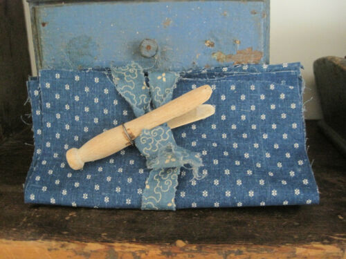 Four Pieces of Old Primitive Blue White CALICO Fabric Textile FREE Clothespin