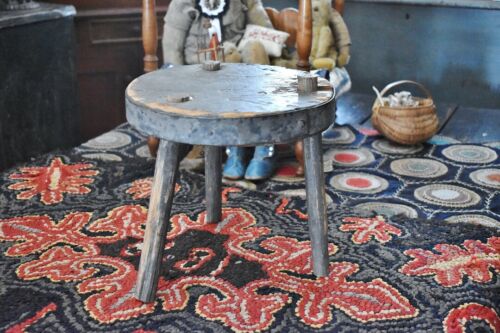 Title (ebay affiliate link): Antique Three-Legged Milking Stool in Original Blue Gray Paint