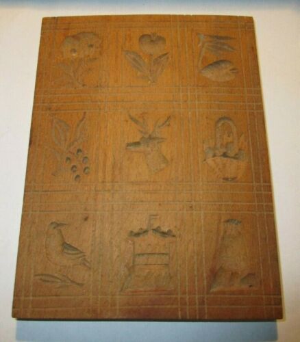 HAND CARVED FOLK ART WOODEN BUTTER PRINT MOLD PRESS SIGNED 9 Pictures