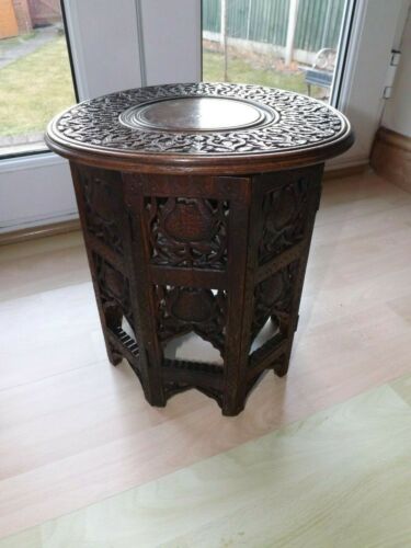 Title (ebay affiliate link): Victorian Finely Carved Indian Octagonal Folding Travelling Side Table c1880
