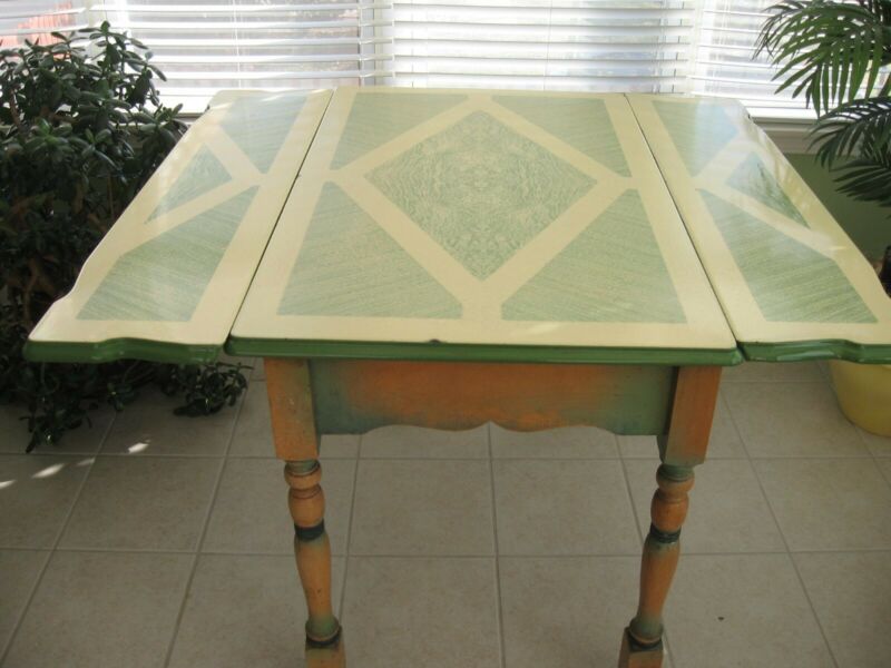 Vintage Porcelain Enamel Top Kitchen Table Convertible 3 Sections