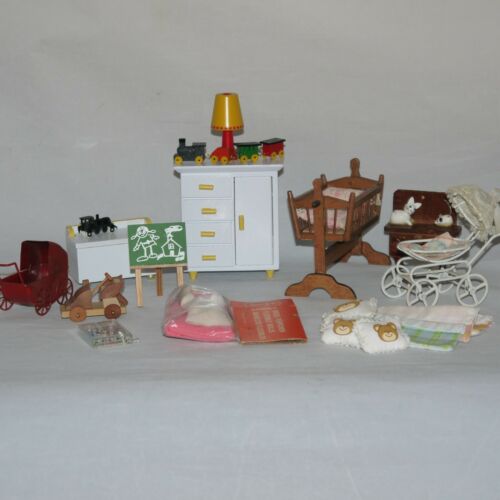 Title (ebay affiliate link): Dollhouse Miniature Nursery Furniture Lot Wardrobe Toy Box Cradle Toys + Vintage