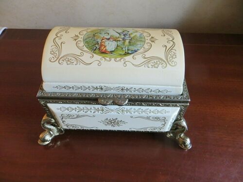 ANTIQUE ORNATE SIMO MUSICAL MOVEMENT LOVE STORY JEWELLERY BOX ITALIAN RARE