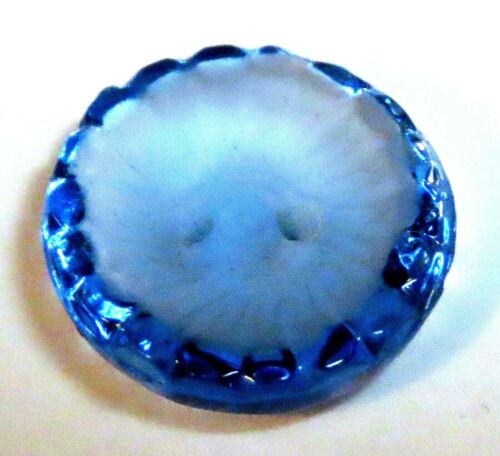 ANTIQUE 1920''S-30''S BLUE DEPRESSION GLASS BUTTON w/NOTCHED RIM & MATTE CENTER