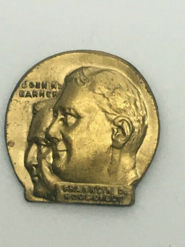 Title (ebay affiliate link): 1932 Franklin D. Roosevelt & John N. Garner Brass Green Duck Jugate Pin