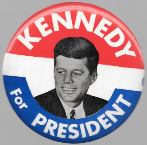 Title (ebay affiliate link): JOHN F. KENNEDY FOR PRESIDENT BIG, BOLD 1960 POLITICAL CAMPAIGN PIN