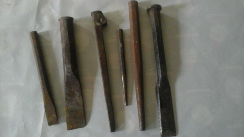 Vintage Lot 6 Blacksmith, Cold Chisels, Drifts, Punches, Metal, Welding & More