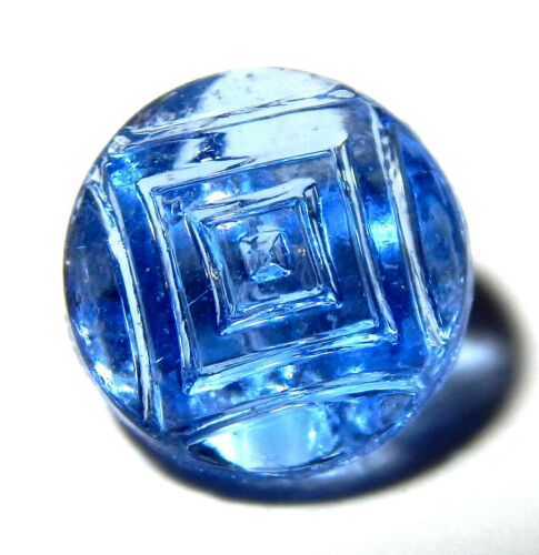 LOVELY 1930''S TRANSPARENT BLUE DEPRESSION GLASS BUTTON w/SQUARE TARGET DESIGN