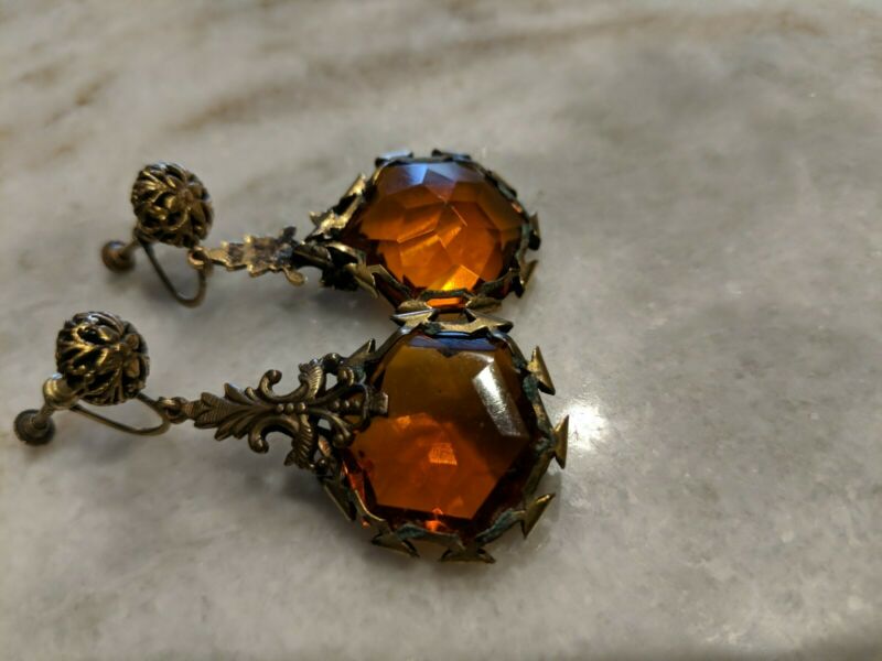 Title (ebay affiliate link): Antique Vintage Art Deco Drop Dangle Earrings Amber Crystal Screw Back