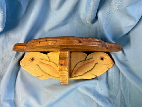 Old Primitive Hand Painted Folk Art Rabbits 3 way Wooden Wall Shelf