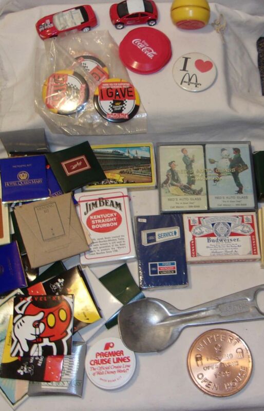 Title (ebay affiliate link): JUNK DRAWER BOX LOT - VINTAGE & ADVERTISEMENT ITEMS - PLAYING CARDS, COCA-COLA +
