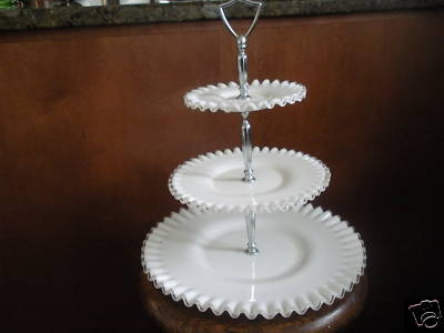 Milk Glass Appetizer Three Tier Dish *Elegant* MINT