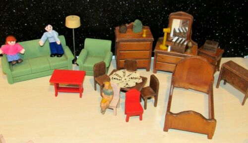 Title (ebay affiliate link): LOT 26 PIECES of VINTAGE/ANTIQUE WOOD DOLLHOUSE FURNITURE LOVELY SET GUC
