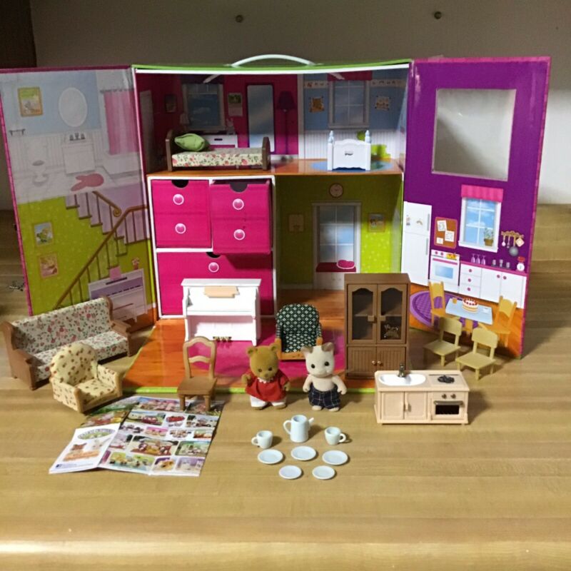 Vintage Calico Critters Carry and Play House With Figures Furniture Accessories
