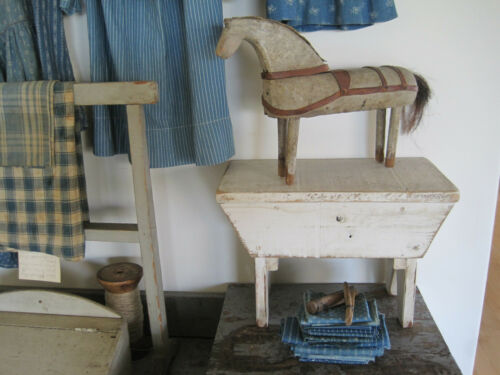 Vintage Primitive White Paint Wood Stool American Country Find Bargain Price