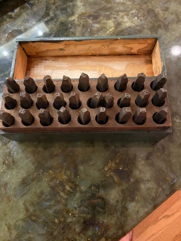 Title (ebay affiliate link): 1/4 inch Antique Vintage Alphabet Punch Stamp Set Metal Tools in Wooden Box