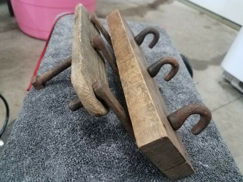 Title (ebay affiliate link): VINTAGE CAST IRON & WOOD HOOK ROPE MAKER, ANTIQUE FARM TOOL 3 Strand Early Barn