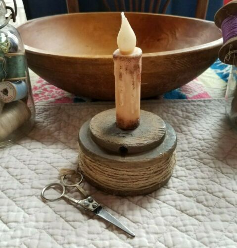 Title (ebay affiliate link): Primitive Homemade String Winder & Candle Folk Art Wood Spool Sewing Scissors