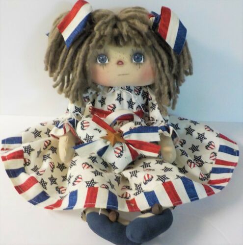 Primitive AMERICANA Raggedy Ann Doll "DORA LEE" WITH HEART ORNIE STARS/ HEARTS