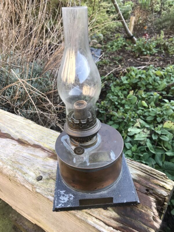 OLD RAILWAY LAMP NUMBER TO TOP BRASS AND COPPER.