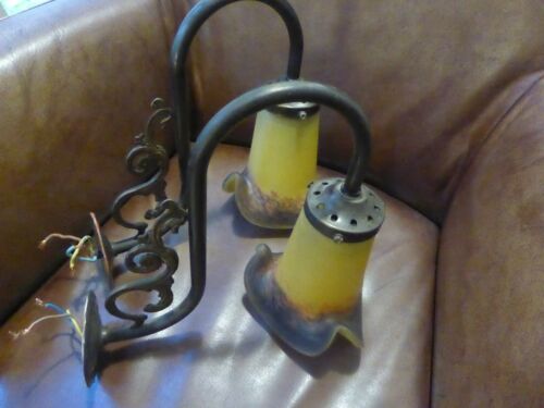 Title (ebay affiliate link): Vintage pair of wall lights yellow orange brown shades glass
