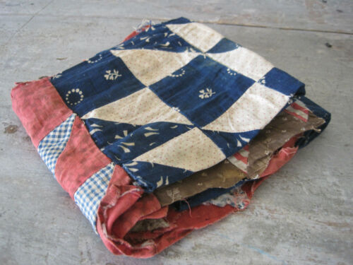 Title (ebay affiliate link): Old Primitive Blue White CALICO Fabric Textile Quilt Top Piece American Dolls