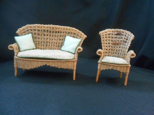 Title (ebay affiliate link): Antique Doll House Furniture Wicker Sofa & Side Chair 3 1/4" Tall