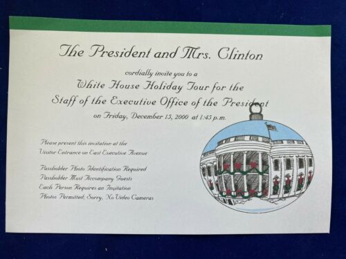 Title (ebay affiliate link): President and Mrs Clinton Invitation White House Holiday Tour December 2000