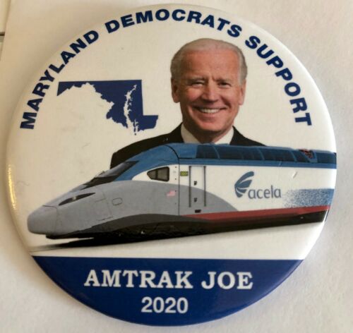 Title (ebay affiliate link): 3" Maryland Democrats Support Amtrak Joe (Biden) 2020 Campaign Pinback Button