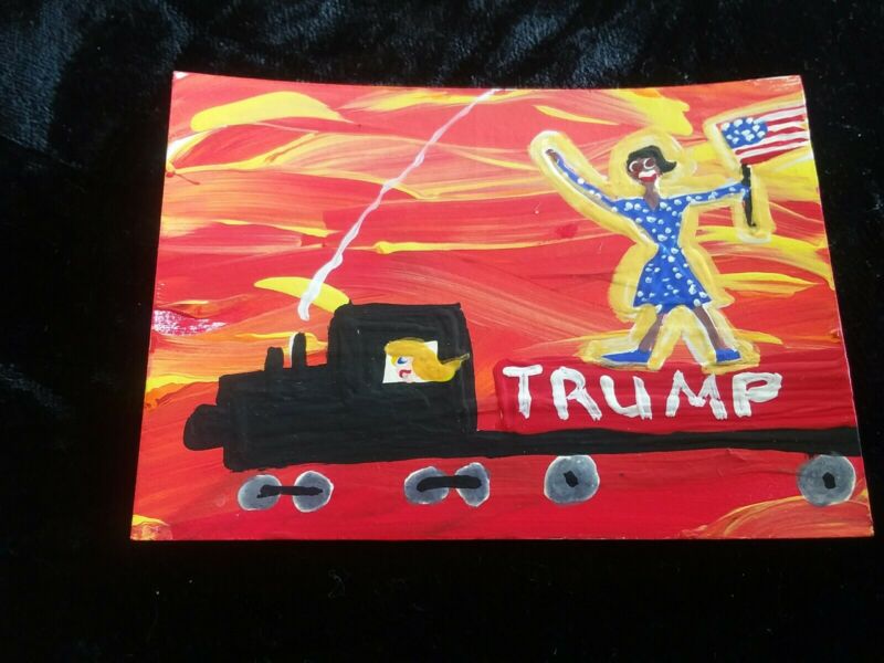 painting CANDANCE OWENS TRUMP TRAIN 2020 art TRADING CARD ACEO signed USA FLAG