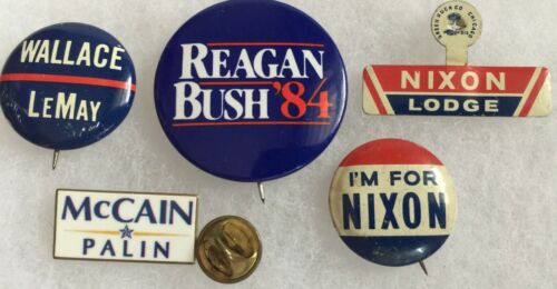5 Presidential Campaign Pins Reagan Bush Nixon Wallace McCain LOOK!@!