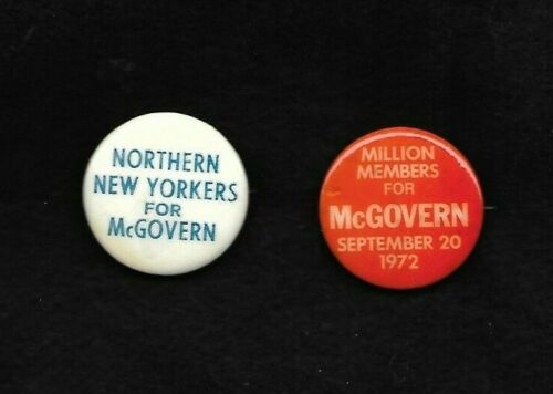 2 uncommon GEORGE MCGOVERN 1972 campaign buttons: Sept.20 Million, North NY