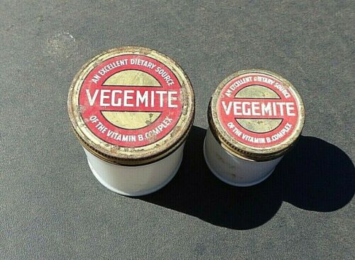 Title (ebay affiliate link): OLD ORIGINAL VEGEMITE WHITE MILK GLASS JARS WITH ORIGINAL LIDS 2 SIZES