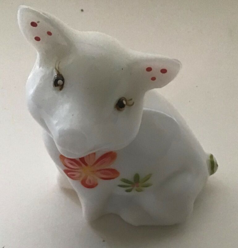 Fenton Milkglass handpainted 4" pig Signed Anderson