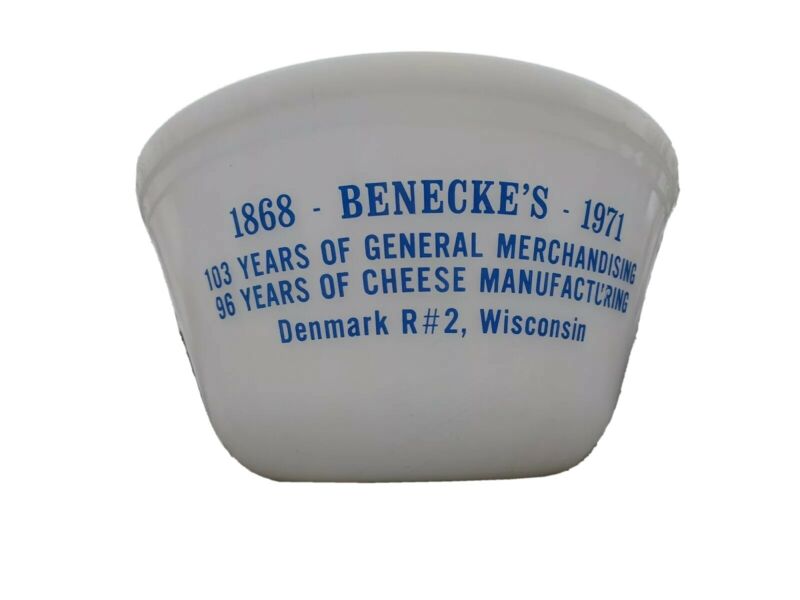 Benecke Cheese Grocery Store Milk Glass Advertising Mixing Bowl Denmark WI vtg
