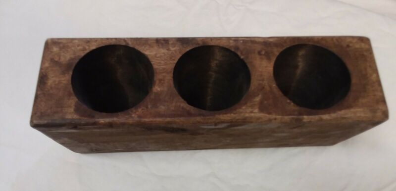 3 Hole Wooden Sugar Mold Wood Candle Holder Primitive Style Farmhouse Decor