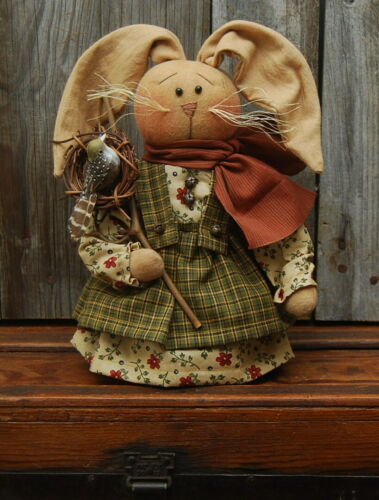 SMALL HANDMADE PRIMITIVE SPRING EASTER STANDING BUNNY RABBIT STUMP DOLL BIRD