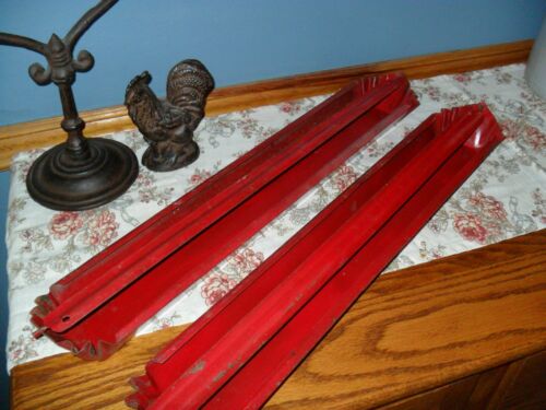 2 VINTAGE RED CHICKEN FEEDERS, ABOUT 23" LONG