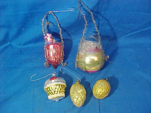 Title (ebay affiliate link): 5 Early 20thc BLOWN GLASS + WIRE Wrap CHRISTMAS ORNAMENTS