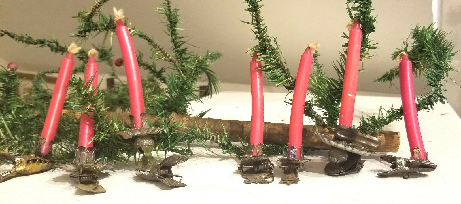 Title (ebay affiliate link): Six Clip-on various Candle Holders. Six Red Candles. Early 1900s German