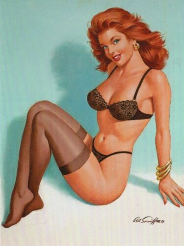Title (ebay affiliate link): POSTCARD OF A VINTAGE PIN-UP BY MacPHERSON OF A WOMAN SITTING IN HER UNDERWEAR