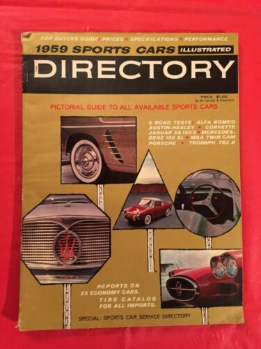 Title (ebay affiliate link): 1959 issue of "SPORTS CARS ILLUSTRATED DIRECTORY" Magazine