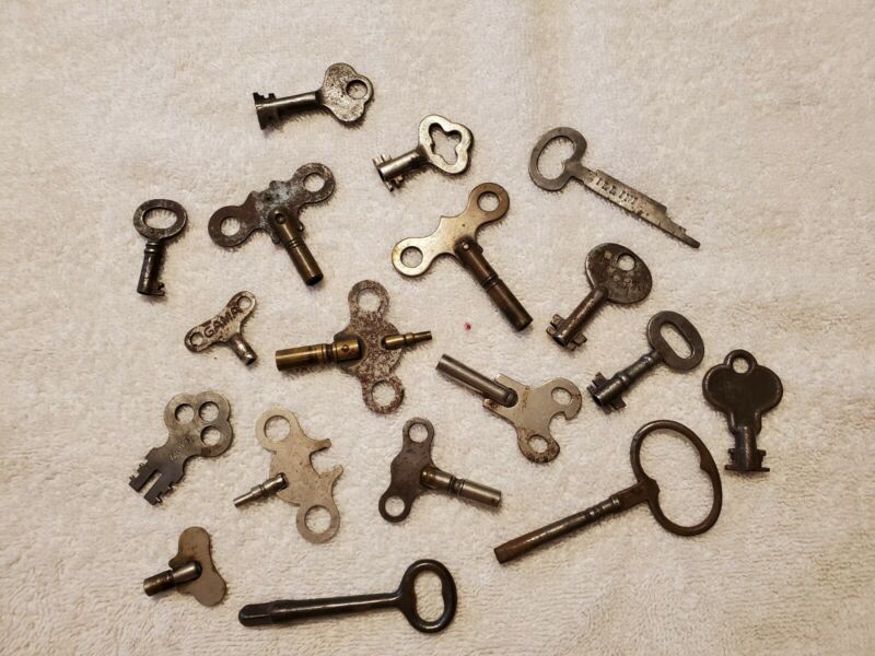 Title (ebay affiliate link): Vintage Assortment of 18 Antique Mantle Clock Keys. Very unique estate lot
