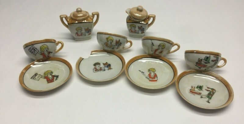 Vintage Orphan Annie Sandy dog child''s lusterware tea set, Japan Geo Borgfeldt