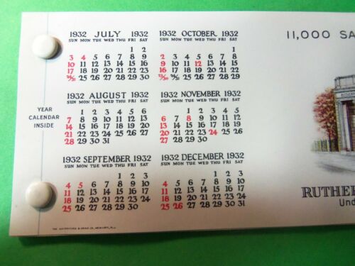 VINTAGE CELLULOID ADVERTISING FOUNTAIN PEN BLOTTER RUTHERFORD NATIONAL BANK 1932